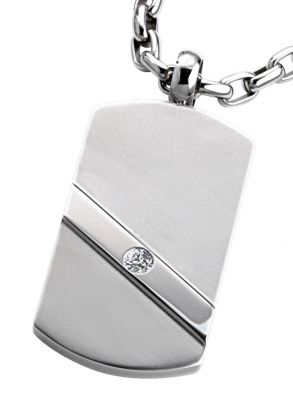 - Teilmattierter Edelstahlanhänger mit poliertem, diagonalem Streifen