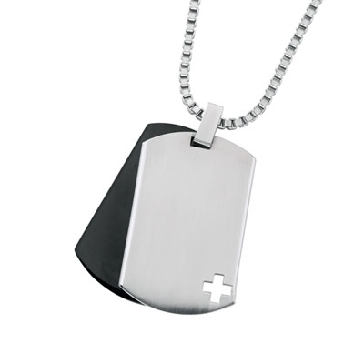 - Zweiteiliger Edelstahlanhänger mit Kreuz, mattiert und geschwärzt
