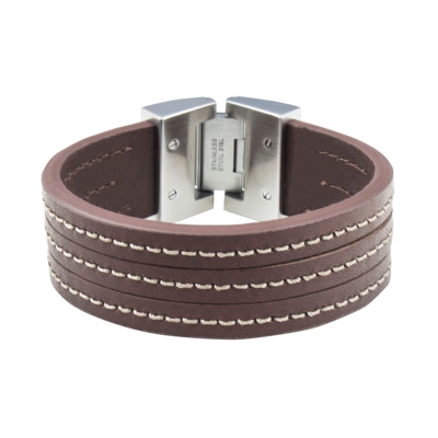 DOOSTI Armband Leder mit Edelstahlschließe Braun - - inkl. Gratis Gravur