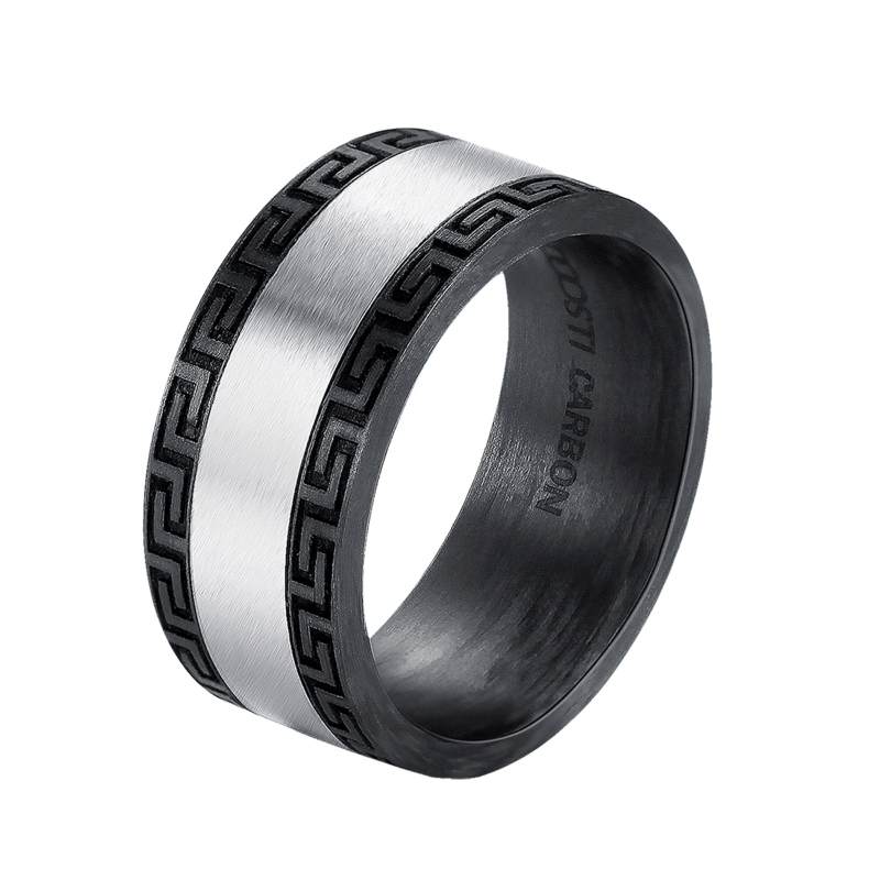- Ring - Oberfläche: Seidenmattes Carbon mit Verzierung und rundum laufenden Edelstahlband
