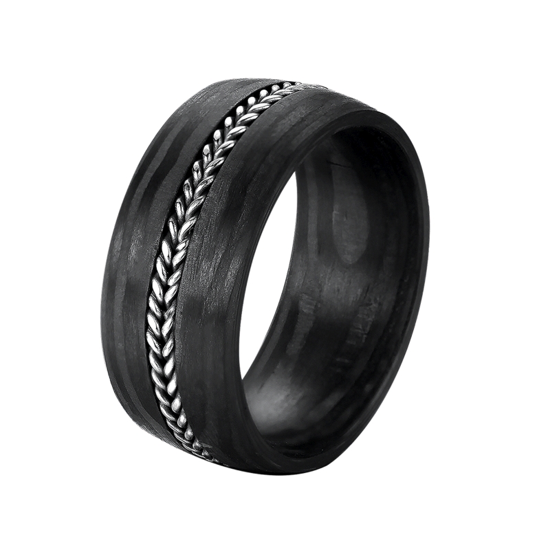 - Ring - Oberfläche: Seidenmattes Carbon mit Verzierungen aus Edelstahl
