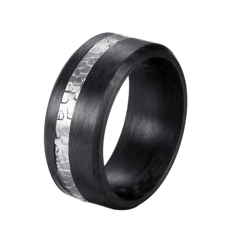 - Ring - Oberfläche: Seidenmattes Carbon mit Verzierungen und rundum laufenden Edelstahlband