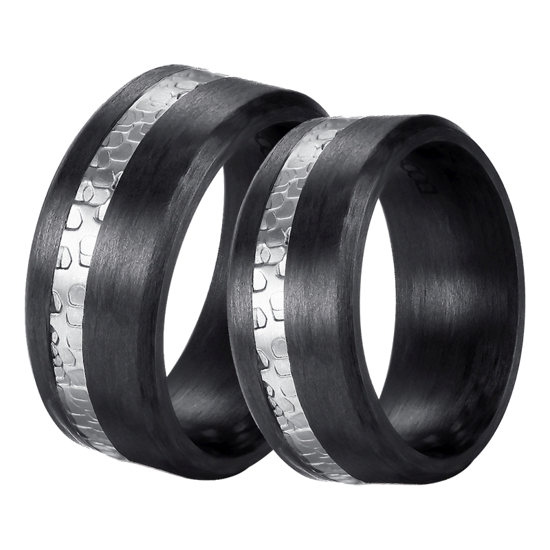 DOOSTI Carbon Ringe / Partnerringe Carbon mit Edelstahl