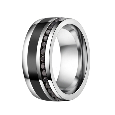 Mobile Preview: DOOSTI Freundschaftsring / Ehering Edelstahl mit Keramikeinlage Schwarz - inkl. Gratis Gravur