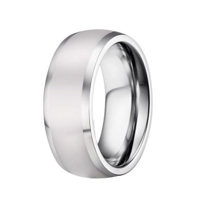 Hochwertiger Edelstahlring aus poliertem chirurgischem Edelstahl 316L mit weißer, polierter Keramikeinlage. Innen ist der Ring für einen besseren Tragekomfort bombiert.