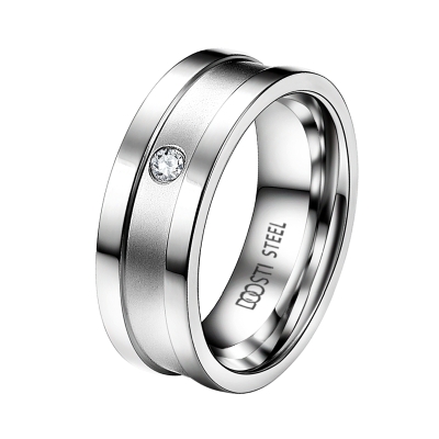 Hochwertiger, aus Edelstahl gefertigter, Freundschaftsring / Partnerring. Die Oberfläche ist gebürstet und poliert, besetzt mit einem Zirkonia. Innen ist der Ring für einen besseren Tragekomfort bombiert.