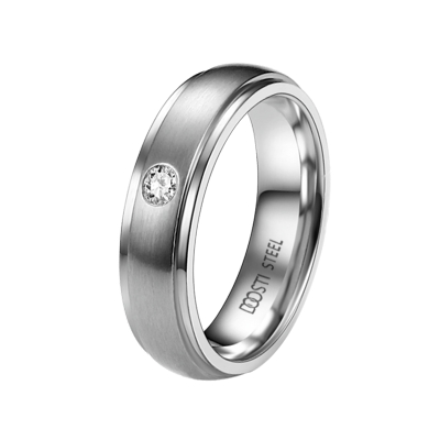 Hochwertiger, aus Edelstahl gefertigter, Freundschaftsring / Partnerring. Die Oberfläche ist mattiert und poliert, besetzt mit einem Zirkonia. Innen ist der Ring für einen besseren Tragekomfort bombiert.
