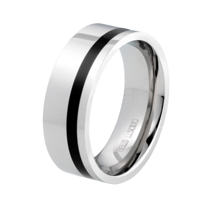 Hochwertiger, aus Edelstahl gefertigter, Freundschaftsring / Partnerring. Die Oberfläche ist poliert, mit schwarzer Kunstoffeinlage. Innen ist der Ring für einen besseren Tragekomfort bombiert.