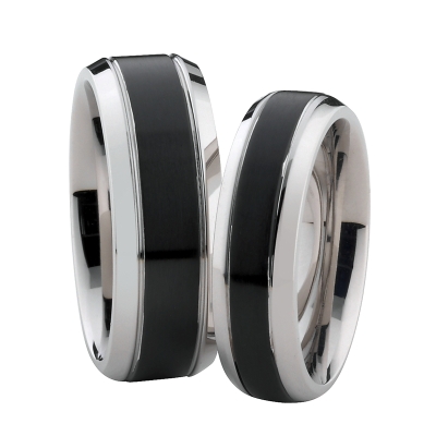 Hochwertiges Paar Edelstahlringe, aus chirurgischem Edelstahl 316L gefertigt. Die Oberflächen sind poliert und mit einem schwarzen Längsstreifen versehen. Innen sind die Ringe für einen besseren Tragekomfort bombiert. Die Lieferung erfolgt in einer Ringbox.