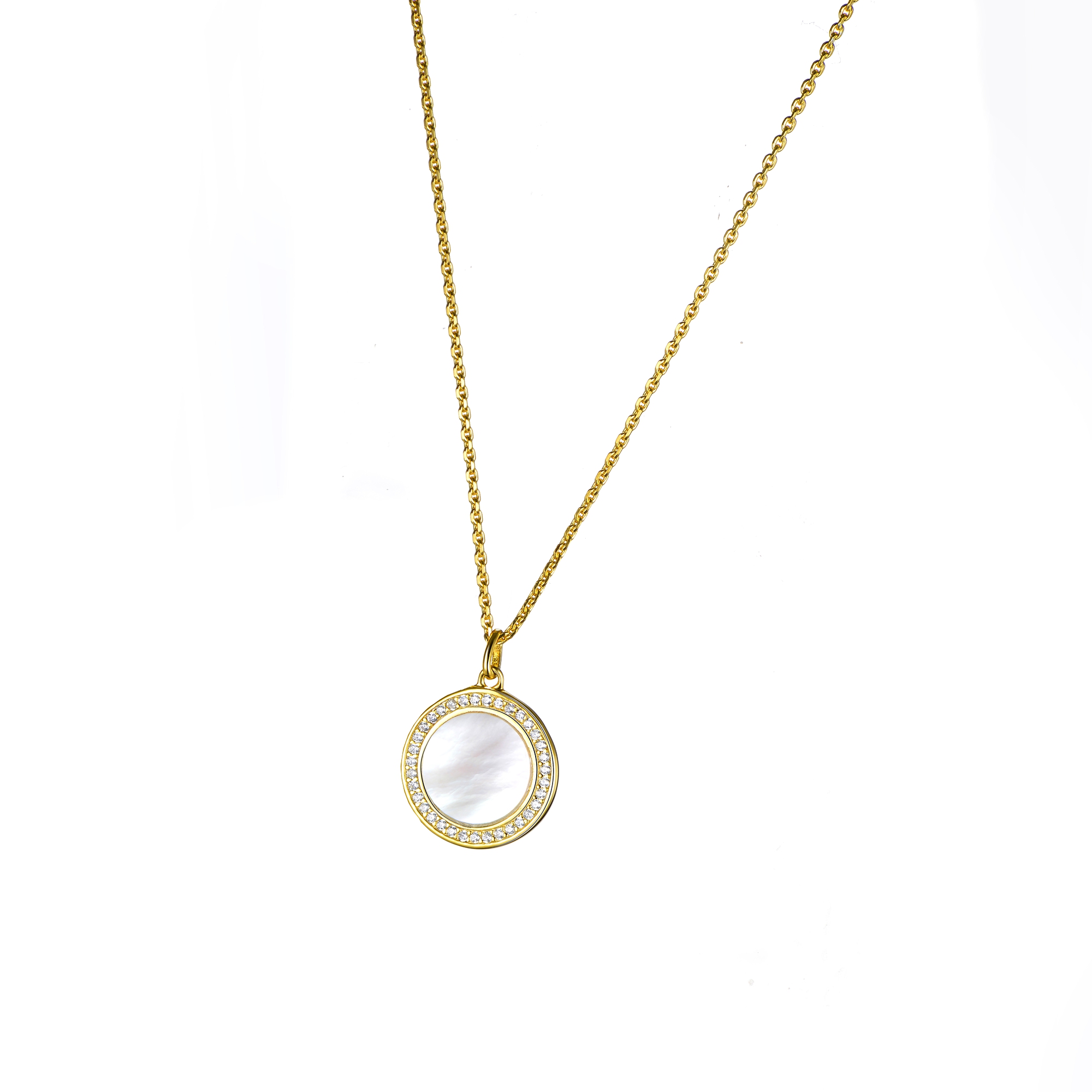 Durchmesser des Anhängers ca. 15mm, mit mehreren Zirkonia besetzt, Perlmutt Einlage in der Mitte