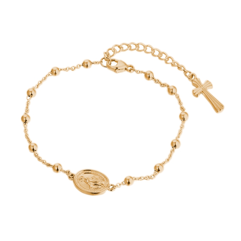 DOOSTI Damen Armband Rosenkranz 925 Silber, Gelbgold vergoldet